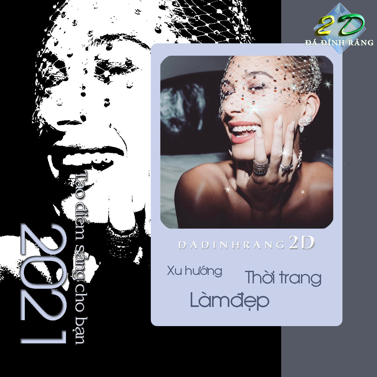 -Nụ cười tạo nên sự khác biệt cho mỗi người với đá đính gắn vào răng. Phong trào làm đẹp năm 2021 dành cho tất cả mọi người.